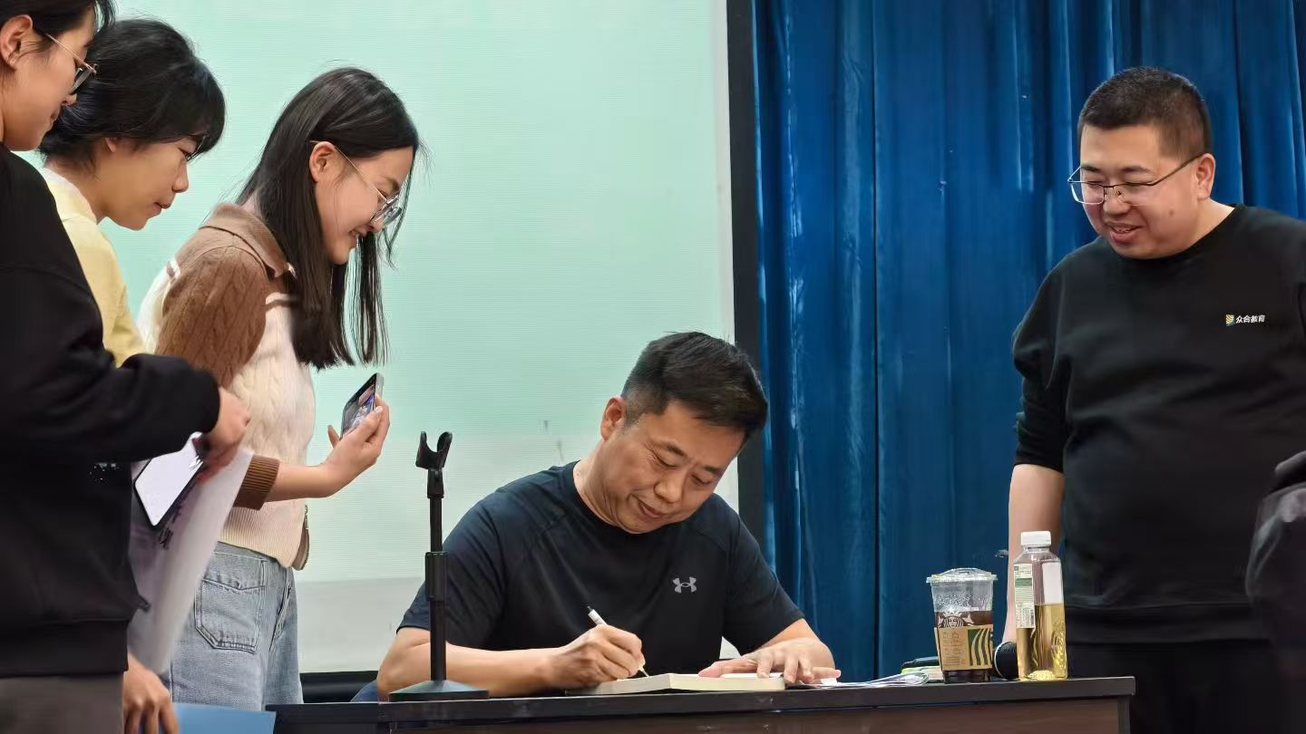 交流环节结束后,现场氛围持续升温。许多同学围上前去,向左宁老师请教专业问题,左宁老师均细致回应、倾囊相授。随后,应同学们热情邀请,他逐一为大家签名留念,笔尖在笔记本、书籍上不停舞动,每一个签名都饱含着对学子们的鼓励。不少同学还抓住机会,与左宁老师合影留念,定格这一珍贵时刻,现场秩序井然又充满温情。