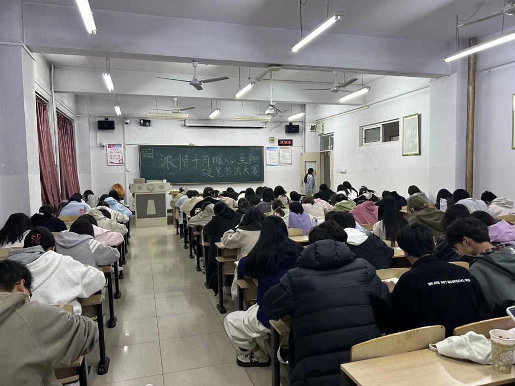 为庆祝重阳佳节,也为进一步推进我院文体活动蓬勃发展,丰富学院文化生活,活跃文化氛围,给同学们展现自我的平台,yl7703永利集团于10月15日在综合楼711、713教室举办了“浓情十月,暖心重阳”硬笔书法大赛。