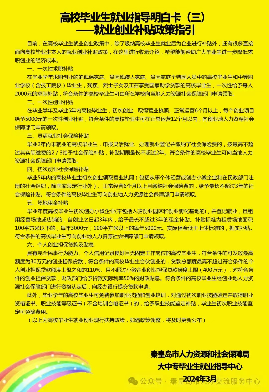 秦皇岛市人社局毕业生就业指导中心更新发布第二期共6版高校毕业生就业指导明白卡,希望用这道就业指导彩虹为更多的毕业生指引前行的方向。