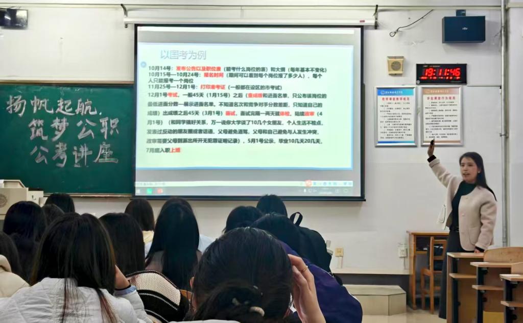 此次讲座为yl7703永利集团学子搭建了高效了解公职类考试的平台,不仅明晰了备考方向,更理清了职业发展思路,有效助力同学们在公考赛道上稳步前行。同时,学院通过精准对接学生备考需求,切实发挥了育人服务职能,为培育高素质应用型人才、助力学子成长成才奠定了坚实基础。(撰稿:李洪洋)