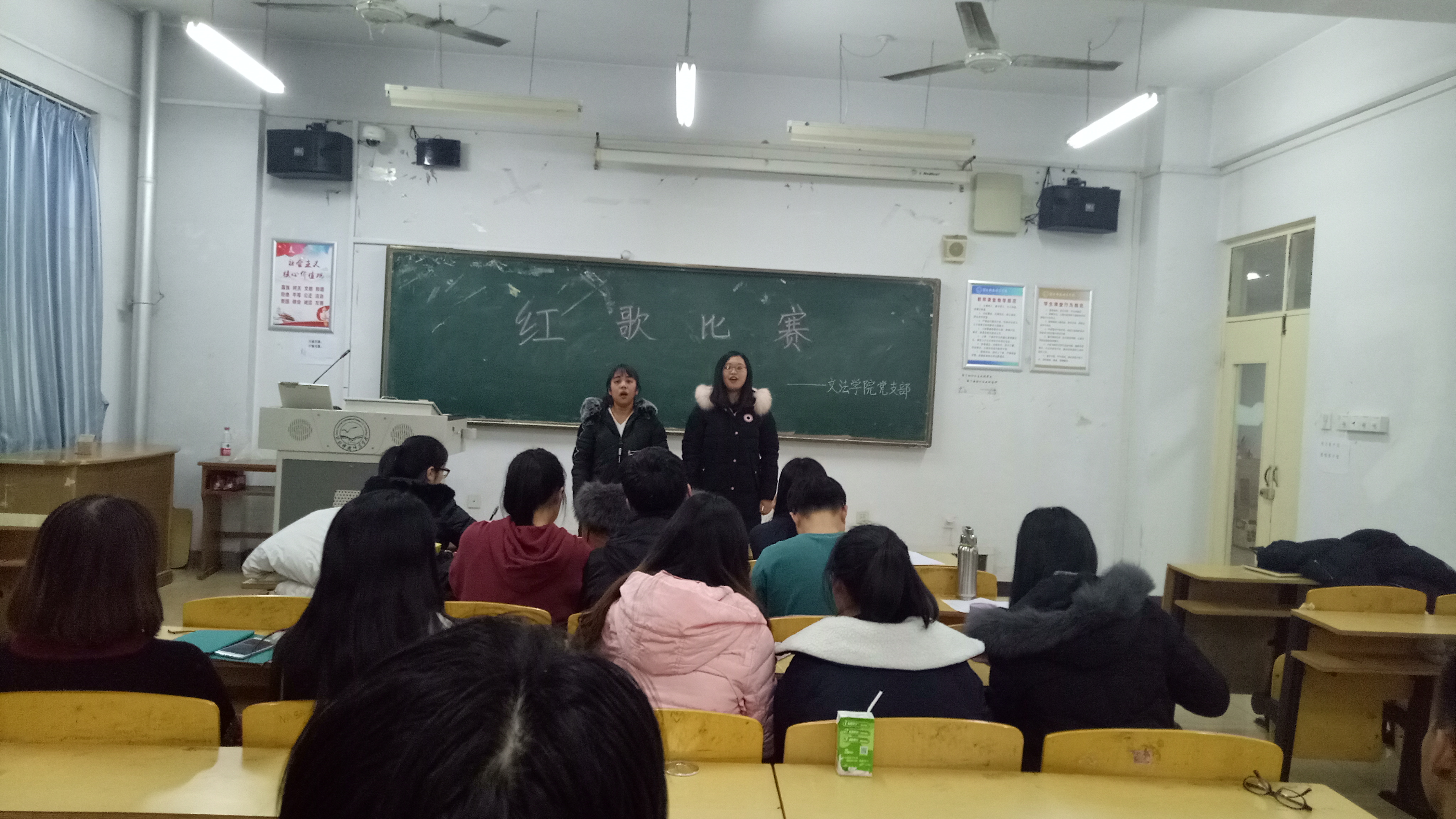 为庆祝党的十九大胜利召开,以文艺的形式宣传十九大精神,唱响主旋律,yl7703永利集团党支部于2017年12月27日晚七点在613举办致初心红歌比赛活动,yl7703永利集团大二大三所有党员参加了此次活动。