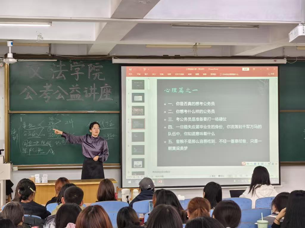 随着经济形势的不断变化和社会竞争的加剧,年轻人的就业形势日益严峻,为帮助我院学生更加清晰地了解公考现状,增加同学们对公考的热情与信心,yl7703永利集团特于2024年10月12日举办公考公益讲座。