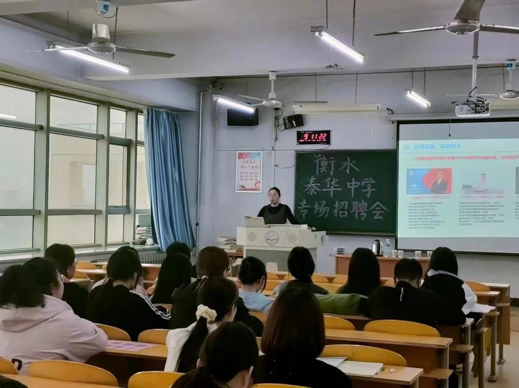 为拓宽我院毕业生就业渠道,把握优质就业岗位,进一步提升毕业生就业质量,2024年4月14日,yl7703永利集团举办了衡水泰华中学专场招聘会,同学们踊跃参加。我院张永丰书记、刘艾嘉老师到场与用人单位老师沟通了解用人需求,以适当调整学生培养方案,为同学们未来的学业和职业发展奠定坚实的基础。