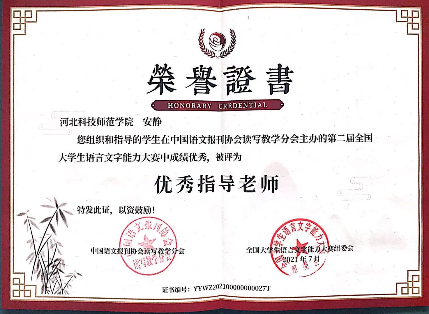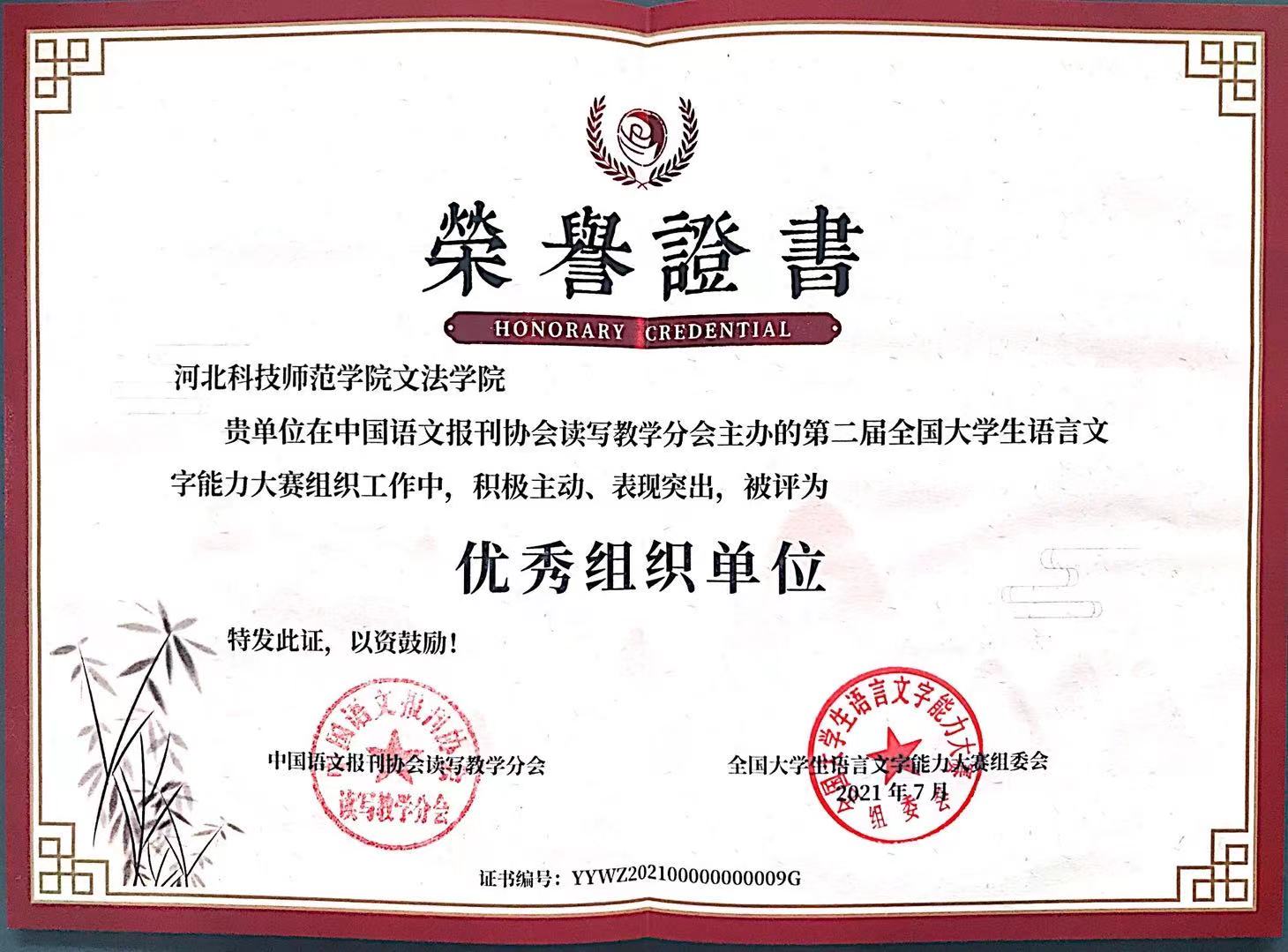 2021 年是《中华人民共和国国家通用语言文字法》实施的第二十个年头。教育部语言文字应用管理司下属的中国语文报刊协会(读写教学分会)组织了第二届大学生语言文字能力大赛。响应疫情期间不聚集的国家号召,本次盛会采用了全程网上进行的方式,这也有利于节省学生的时间和经济成本,有利于各年级学生参赛助力考研和求职等考试。我校yl7703永利集团汉语国际教育专业积极参与了本次比赛。
